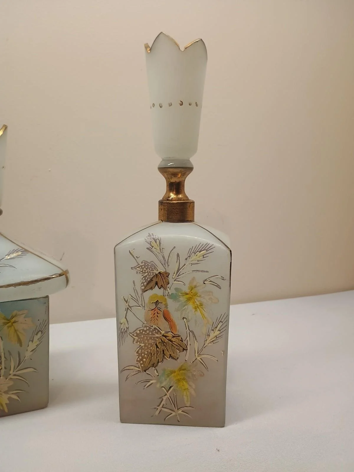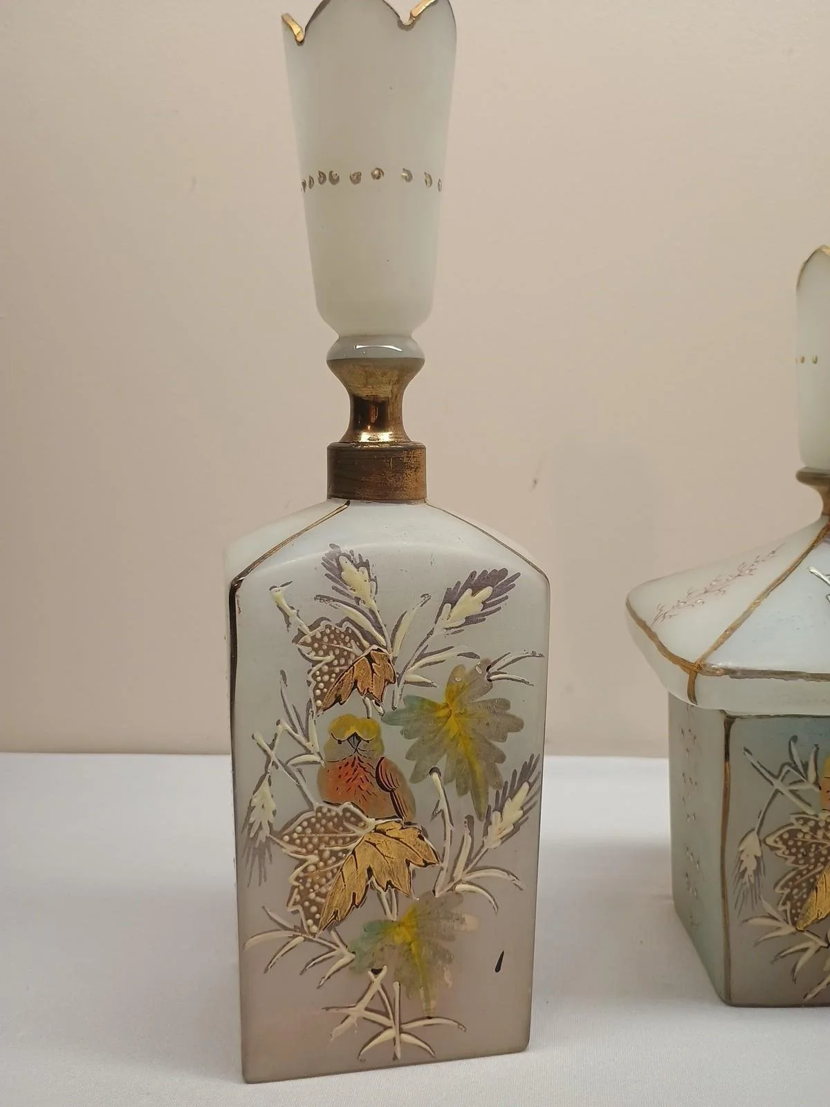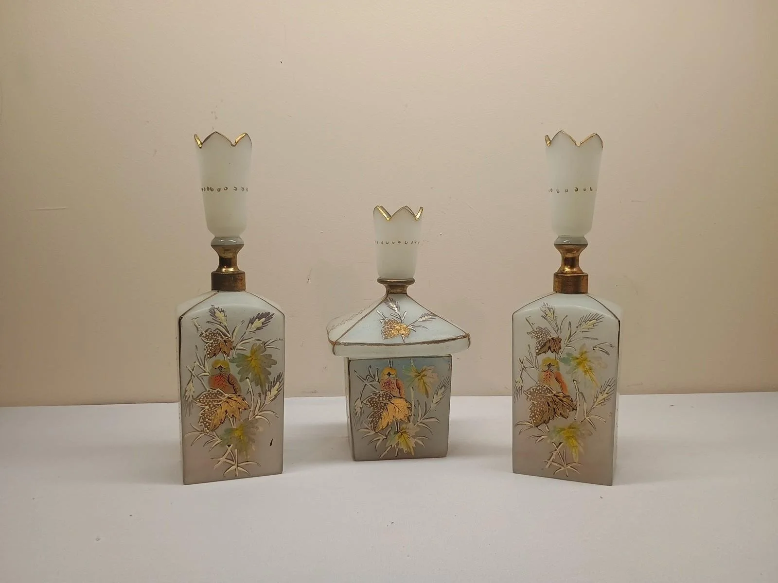 Pottery/Art Glass › Antique Bristol Glass Victorian Barber Bottle Decanter Hand Painted 3-Piece Set Image 1 of 8 Image 2 of 8 Image 3 of 8 Image 4 of 8 Image 5 of 8 Image 6 of 8 Image 7 of 8 Image 8 of 8 Antique Bristol Glass Victorian Barber Bottle Decanter Hand Painted 3-Piece Set $99.00 sold out Nice looking pieces. Set of 3 no chips or cracks Sold Out Added! Nice looking pieces. Set of 3 no chips or cracks