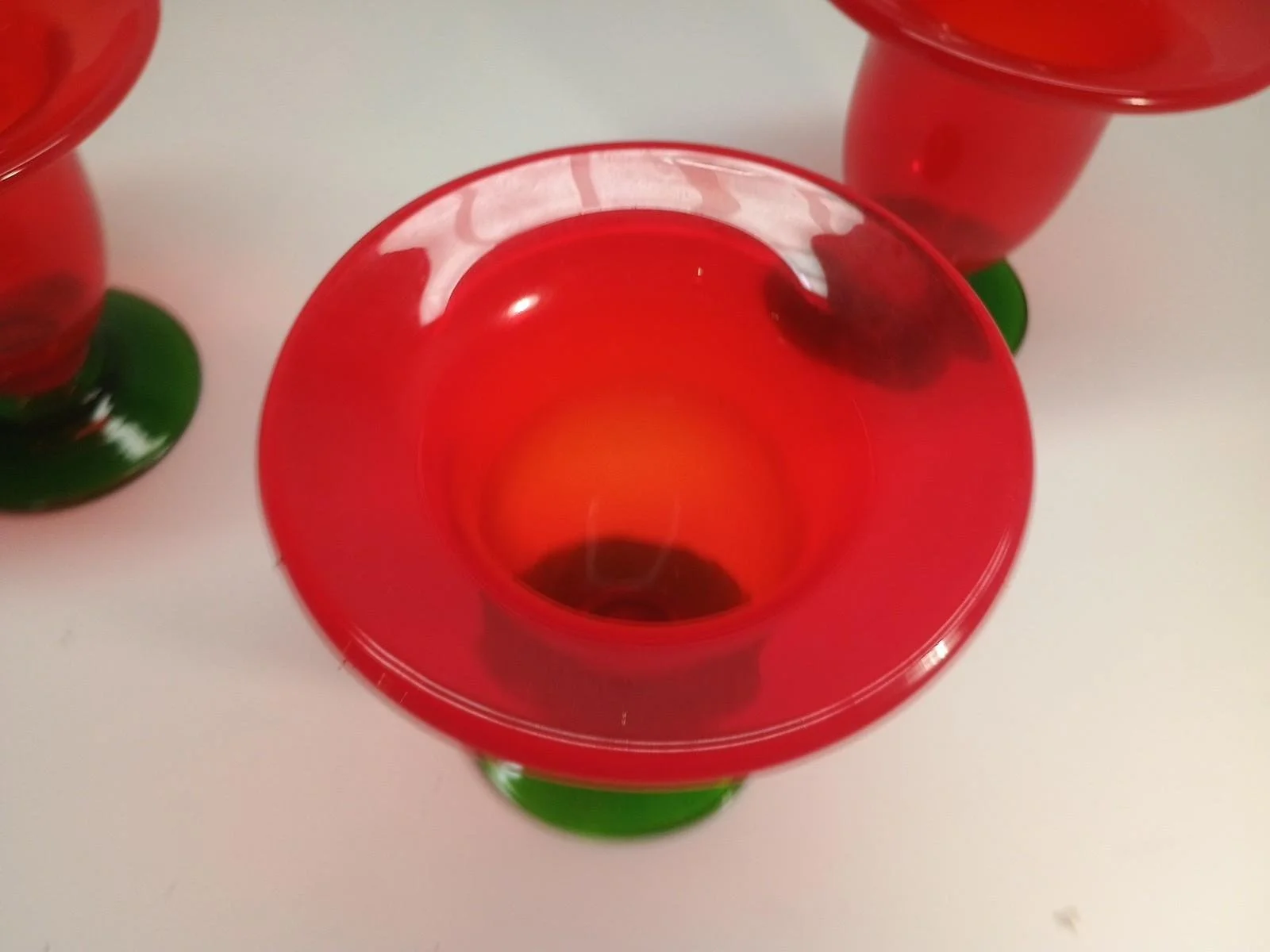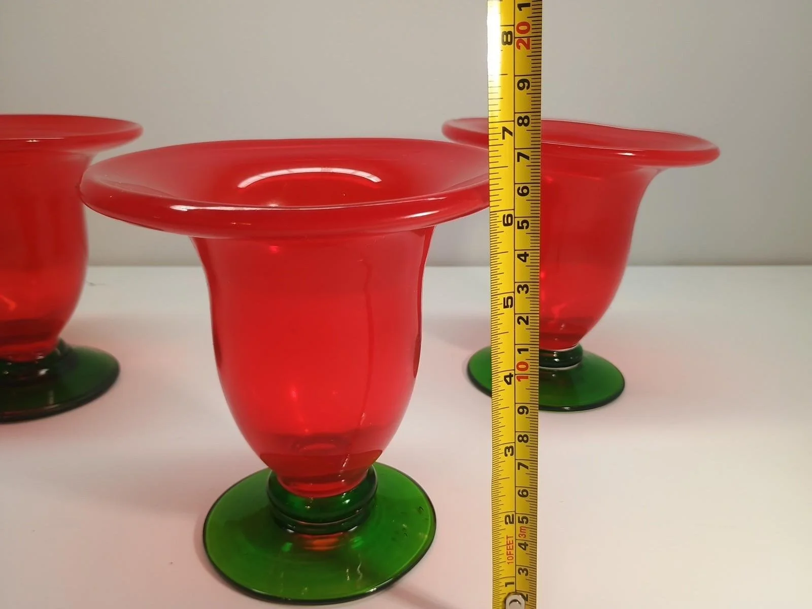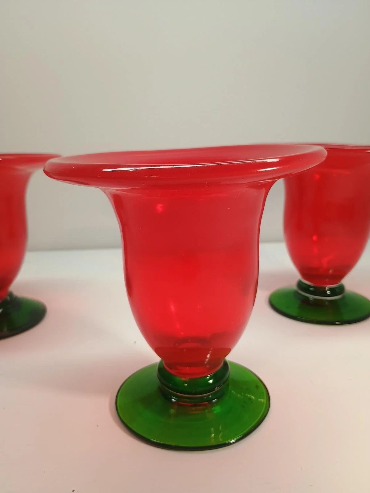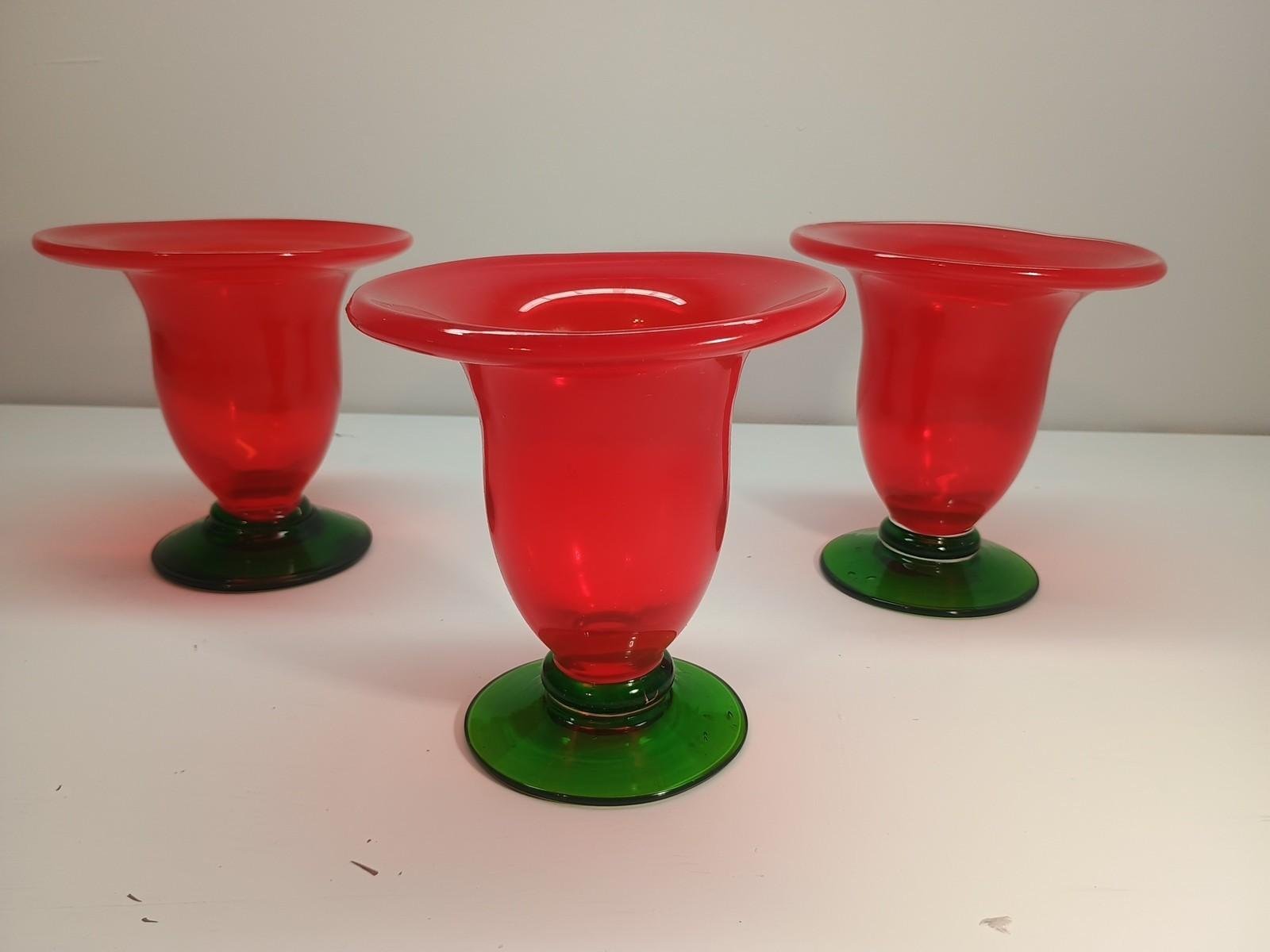Pottery/Art Glass › Blown Glass Pedestal Vase Red w/ Green Base (Set Of 3) Image 1 of 5 Image 2 of 5 Image 3 of 5 Image 4 of 5 Image 5 of 5 Blown Glass Pedestal Vase Red w/ Green Base (Set Of 3) $44.99 3 pieces all in like new condition Add To Cart Added! 3 pieces all in like new condition