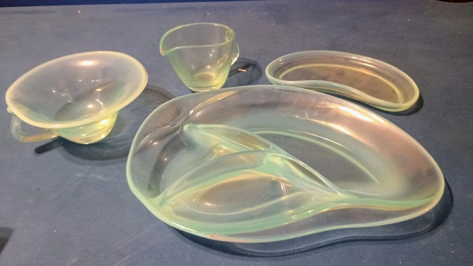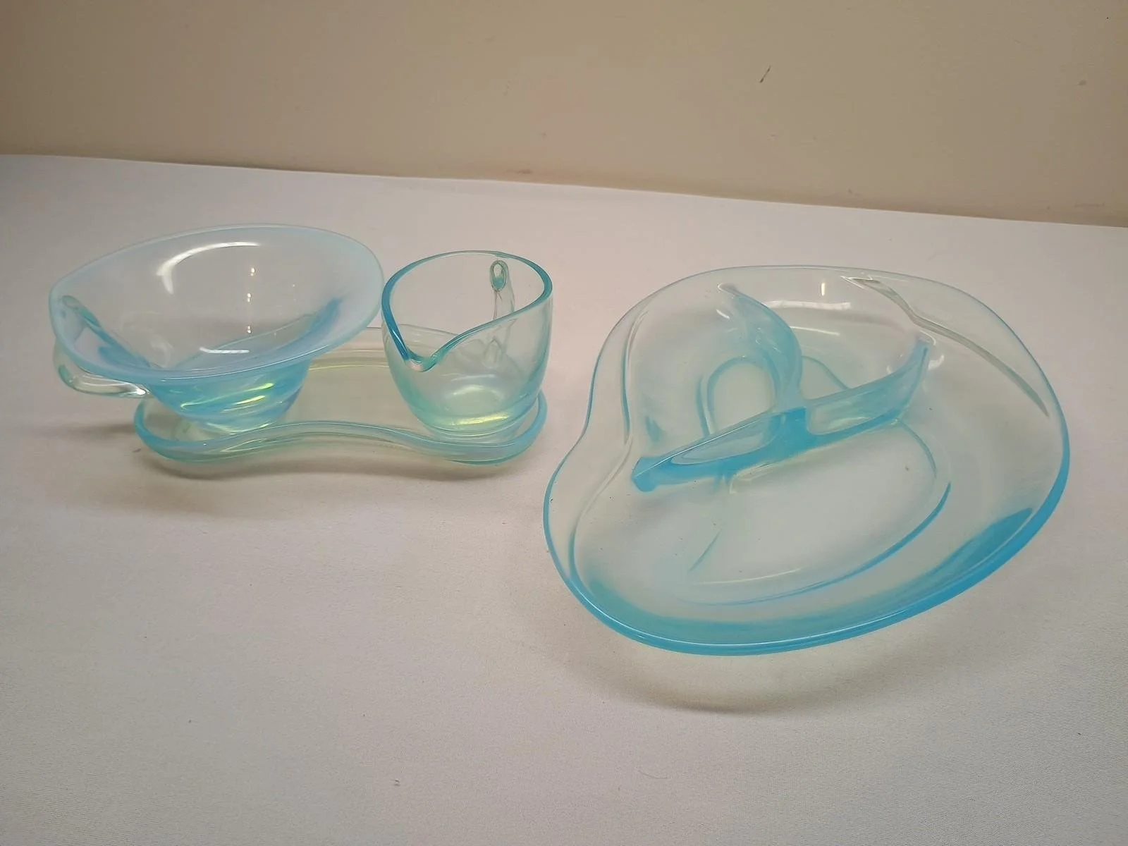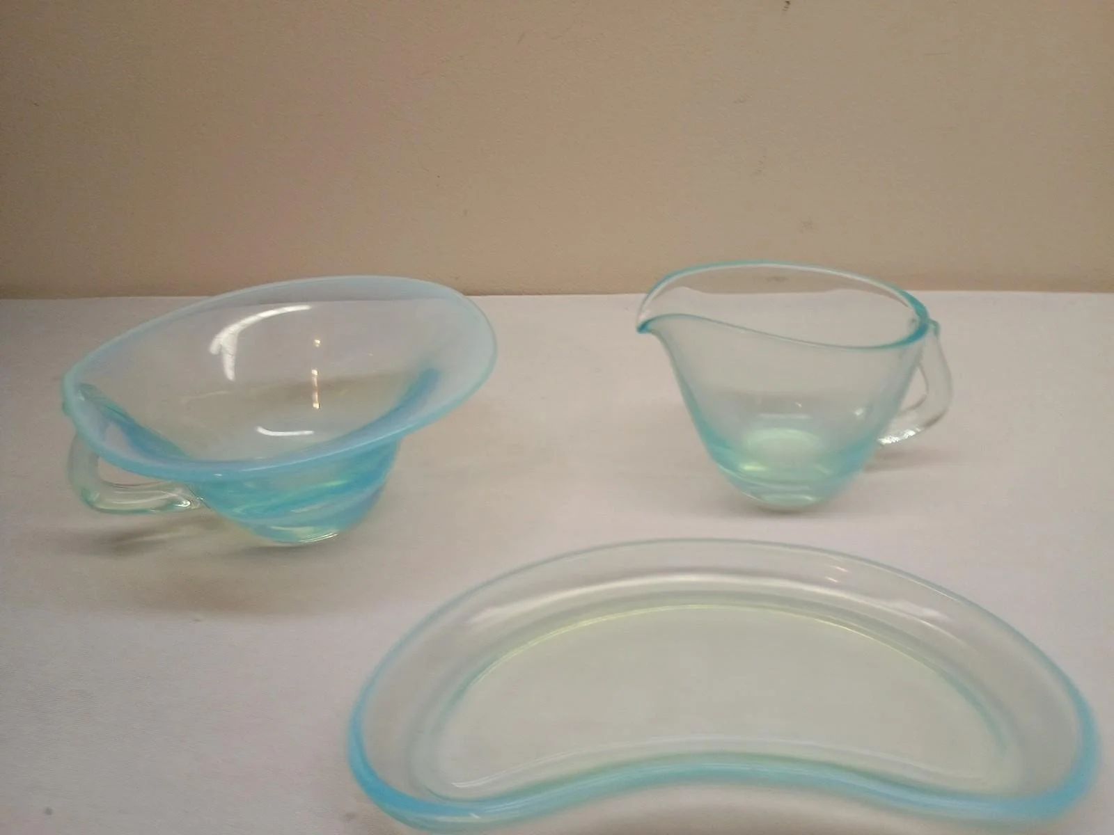Pottery/Art Glass › Fostoria Seascapes Blue Opalescent Glass Set (4 Pieces) Image 1 of 5 Image 2 of 5 Image 3 of 5 Image 4 of 5 Image 5 of 5 Fostoria Seascapes Blue Opalescent Glass Set (4 Pieces) $60.00 Great condition. Amazing color of blue, it looks even better with a dark background Add To Cart Added! Great condition. Amazing color of blue, it looks even better with a dark background