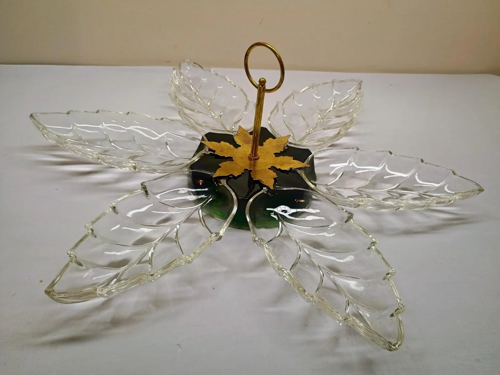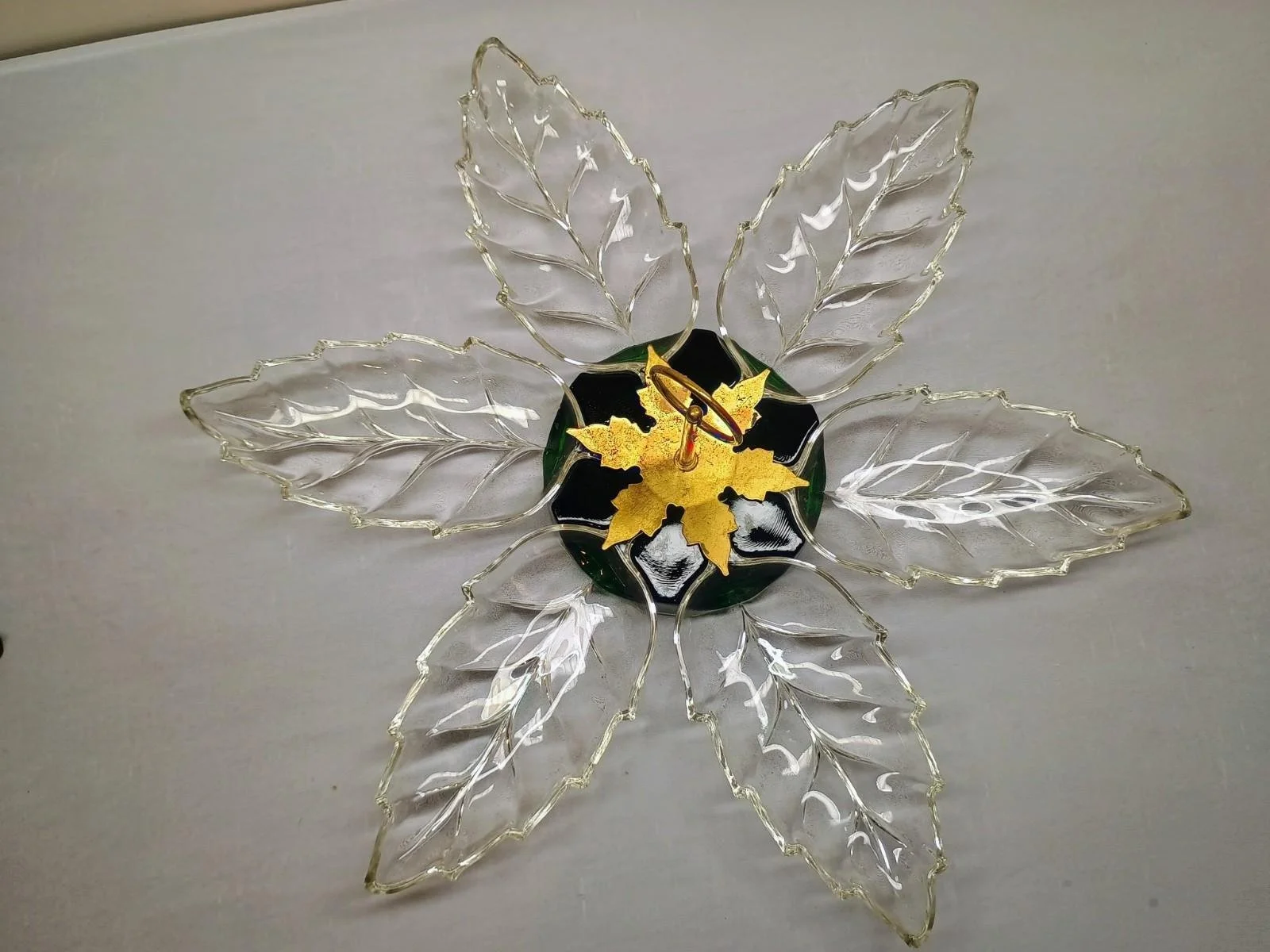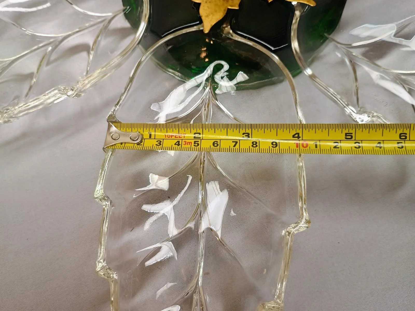 Extremely hard to find the leaves let alone a complete set. Produced by Fenton for Rubel. This piece is in amazing condition. Some small chipping on the tip of the leaves where it connects to the base but you don't see that part when it's put together. Measurements are in photos.