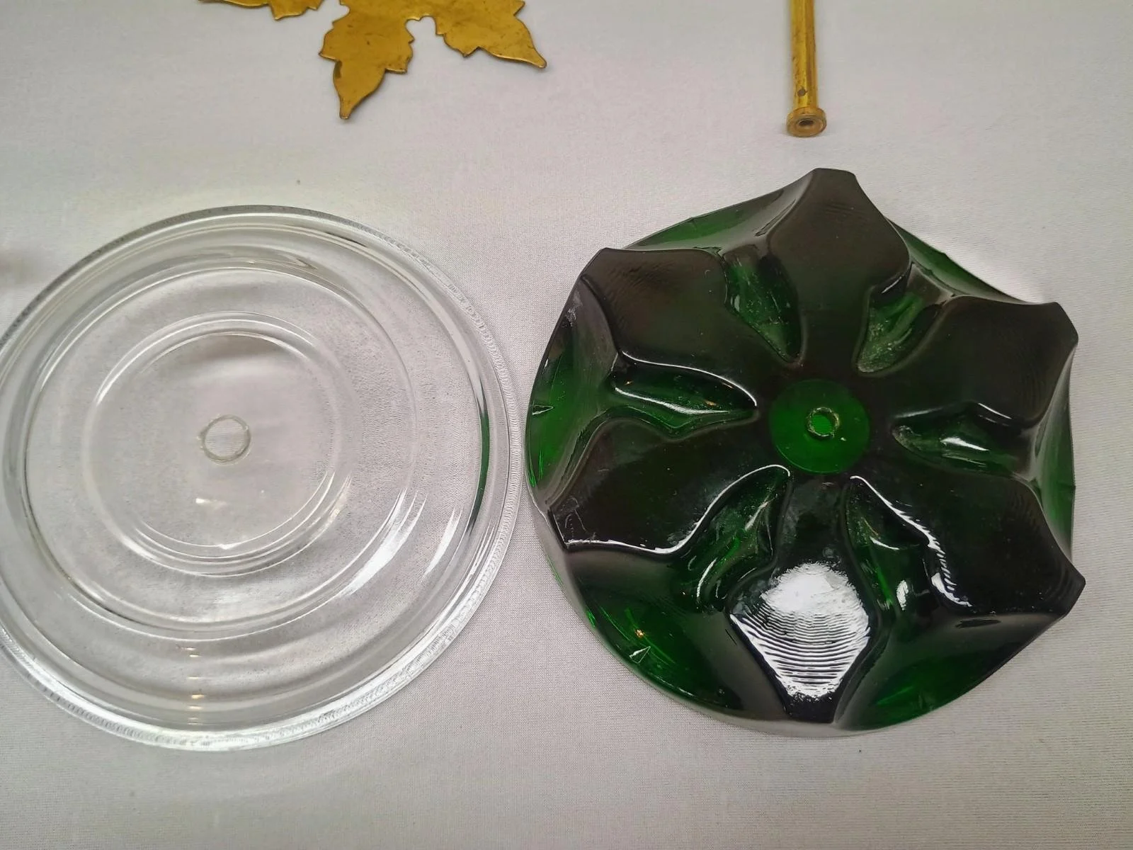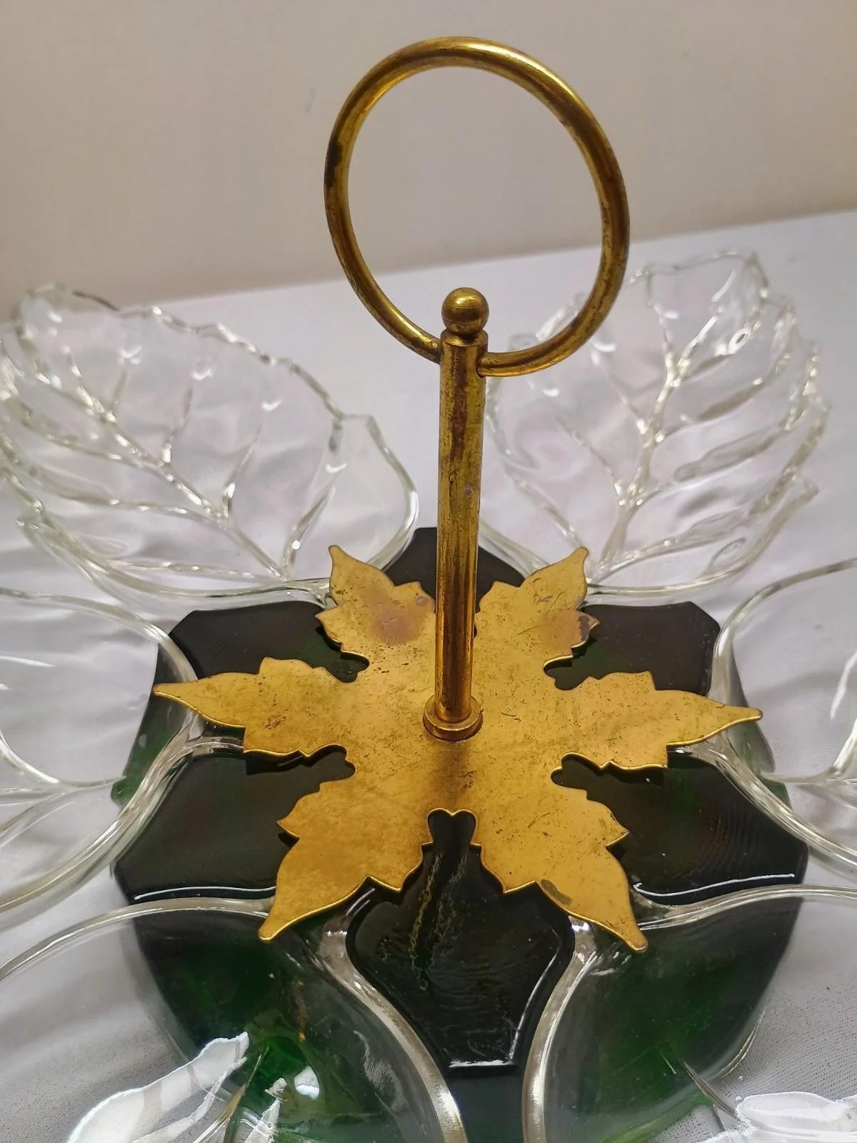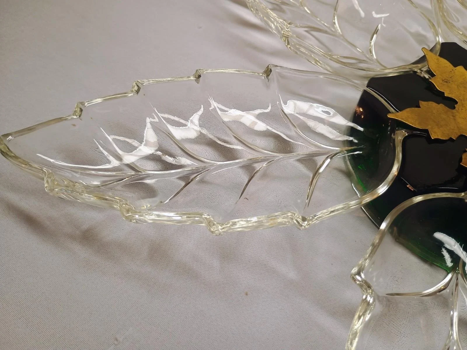 Extremely hard to find the leaves let alone a complete set. Produced by Fenton for Rubel. This piece is in amazing condition. Some small chipping on the tip of the leaves where it connects to the base but you don't see that part when it's put together. Measurements are in photos.