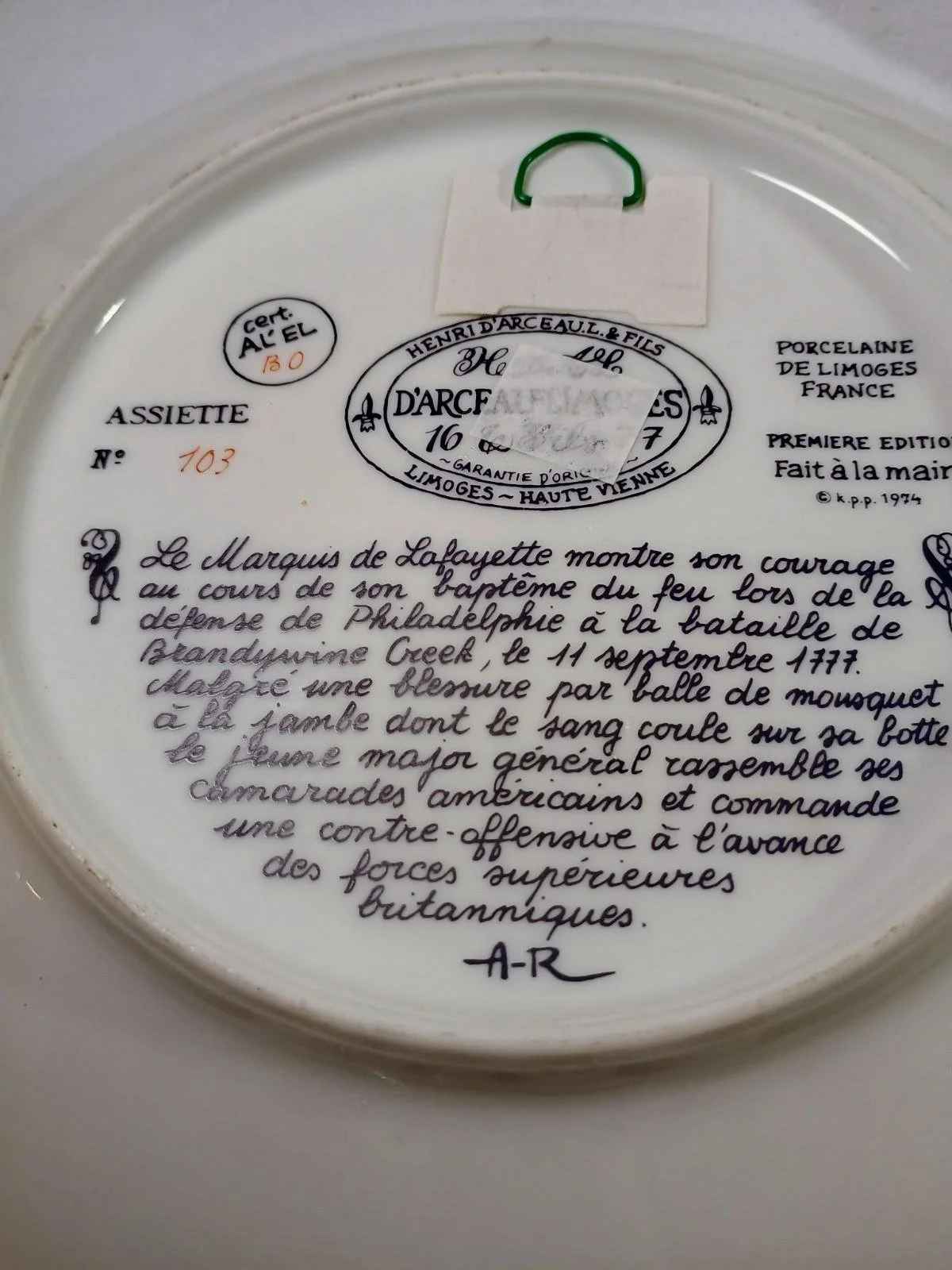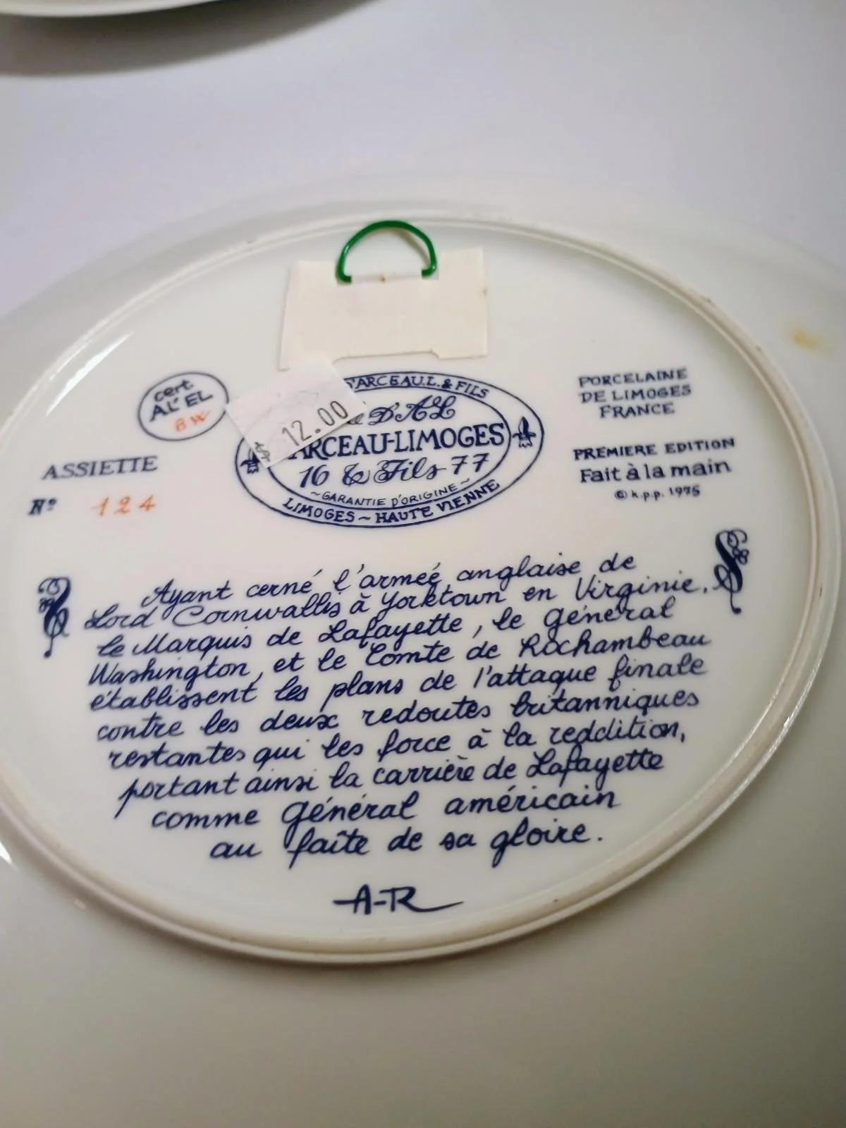 Set of 5 - 1974 D'arceau Limoges Lafayette Legacy Collection Plates 8 3/8"