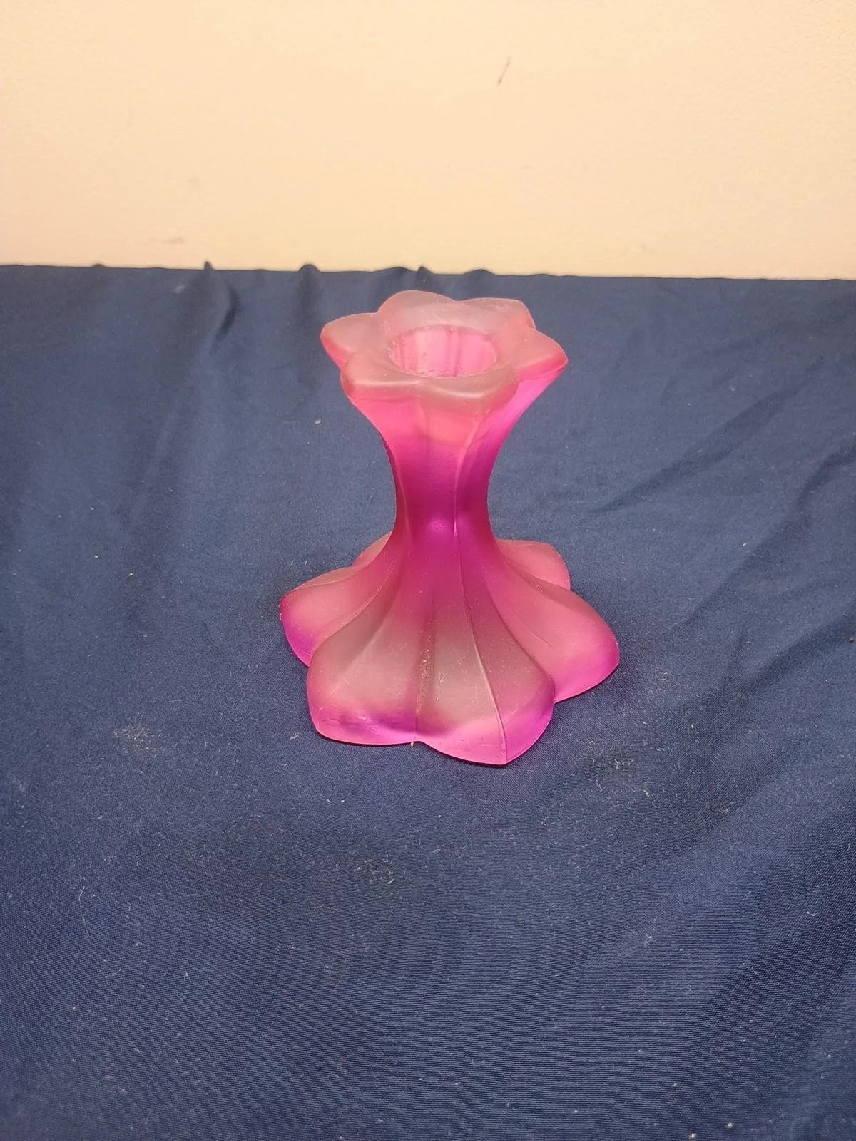 Pottery/Art Glass › Soft Pink Satin Frosted Glass Floral Candlestick Holder Image 1 of 4 Image 2 of 4 Image 3 of 4 Image 4 of 4 Soft Pink Satin Frosted Glass Floral Candlestick Holder $10.80 sold out Nice looking piece Sold Out Added! Nice looking piece