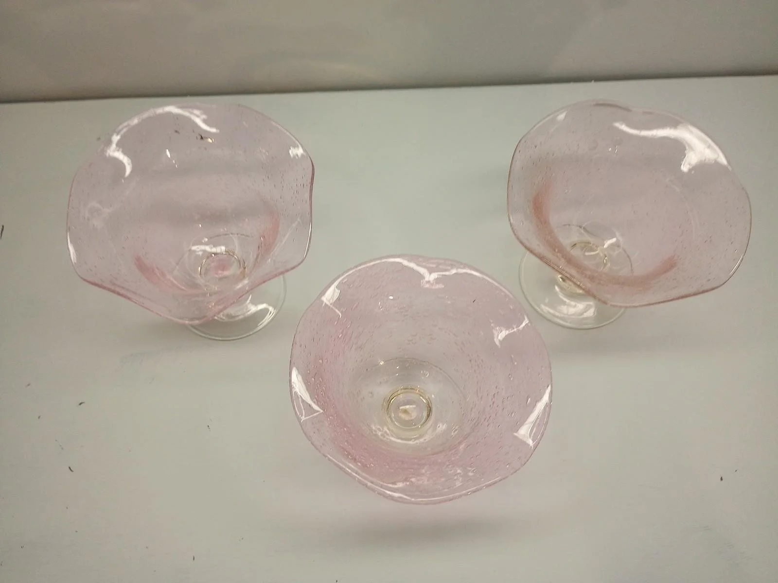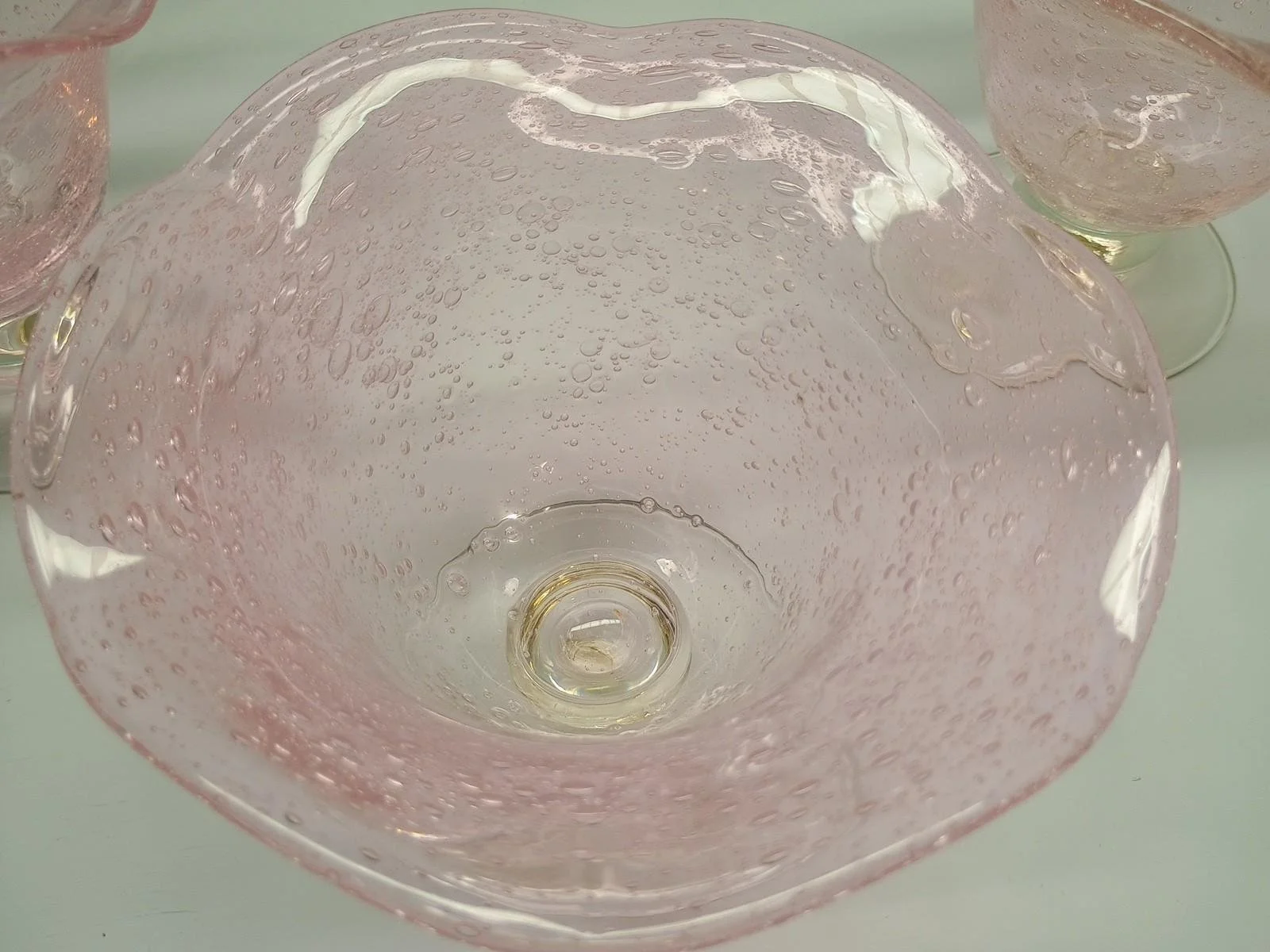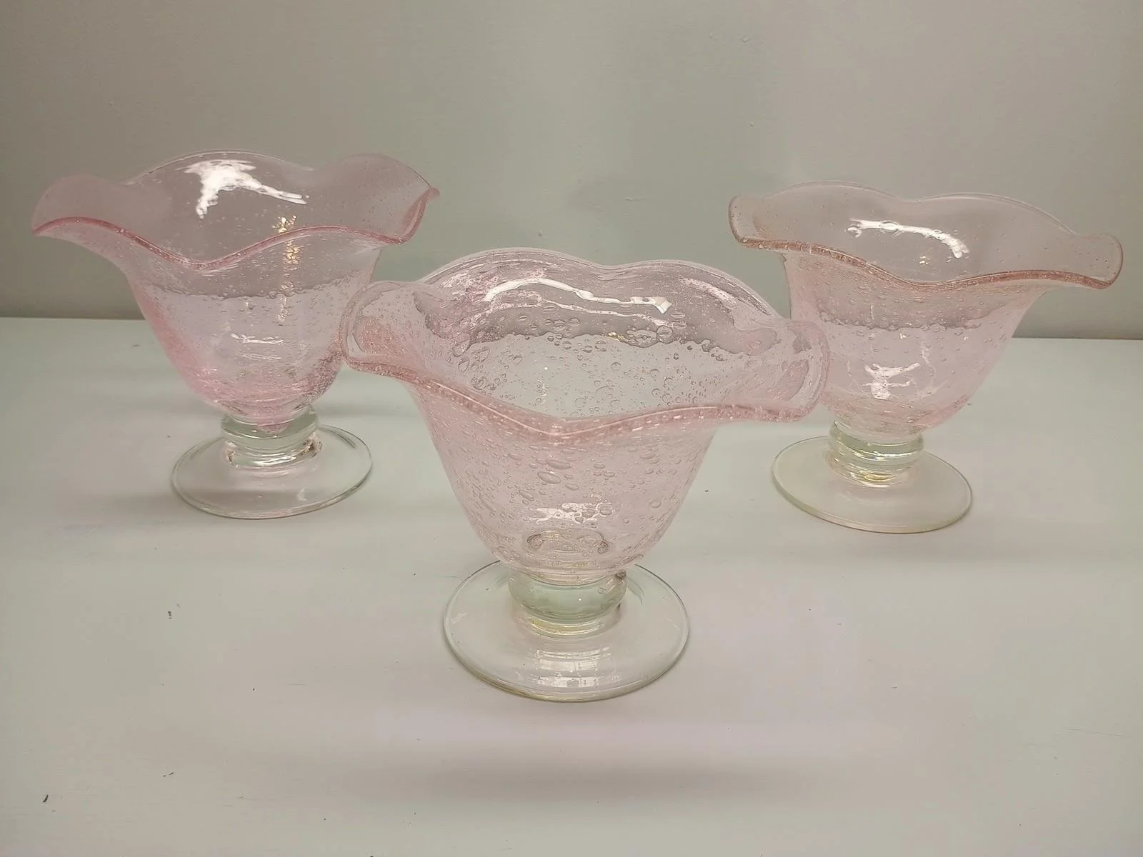 Pottery/Art Glass › Vintage Studio Art Pink Bubble Glass Ruffled Compote Dish (3 Pieces) Image 1 of 5 Image 2 of 5 Image 3 of 5 Image 4 of 5 Image 5 of 5 Vintage Studio Art Pink Bubble Glass Ruffled Compote Dish (3 Pieces) $42.99 3 pieces set Great condition Add To Cart Added! 3 pieces set Great condition