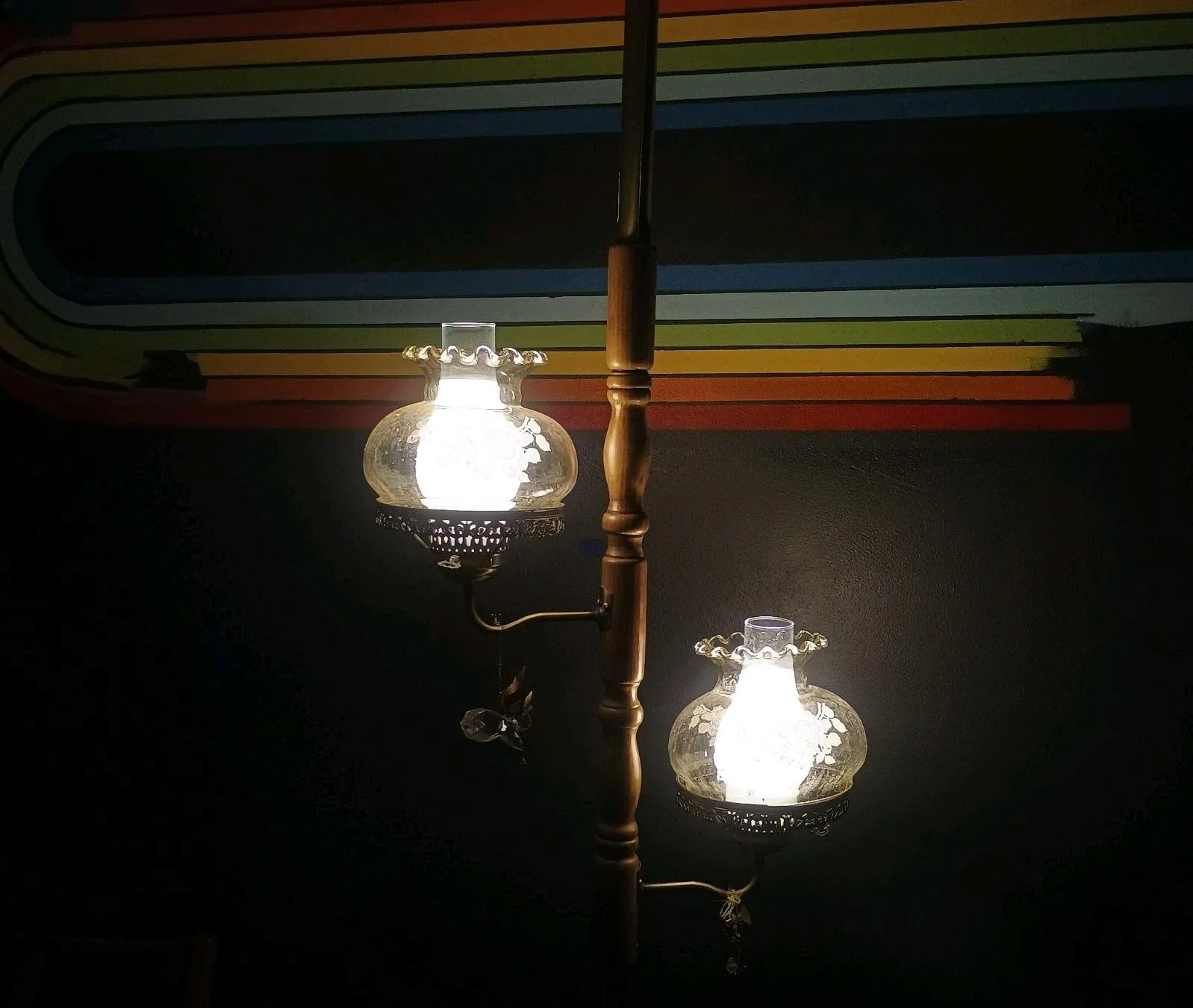 Vintage Swag Lamps & More Lamps/Lighting Vintage Frosted Crackle Glass Ball Hanging Swag Lamp By Moe Lighting $80.00 Add To Cart Added! Vintage Oil Rain Lamp Dolphin Blue Waves 16" $180.00 Sold out Sold Out Added! SWAG LIGHT FIXTURE Vintage Art Deco Hanging White Globe Lamp $80.00 Sold out Sold Out Added! Vintage Tin Chi Amber Glass Cat Lamp - Works $70.00 Add To Cart Added! 1970s Made on Earth 43" Wood Wall Clock w/Mirror Doors MCM Retro w/ Pendulum $92.34 Add To Cart Added! Vintage Tension Pole Lamp MCM 2 Lights With Shades $149.99 Sold out Sold Out Added! Unique Mid Century Modern Oil Candle Lamp Hand Made Wood Root Craft w/ Two Candl $34.79 Add To Cart Added! Vintage Spanish Gothic Revival Swag Lamp Wrought Iron Amber Glass (Wall Plug) $120.00 Sold out Sold Out Added! Vintage Green Clear Acrylic Lucite MCM Table Lamp With Shade 28" $36.61 Add To Cart Added! Tiffany Style Stained Glass Hanging Ceiling Light Fixture Pub Bar Lamp 7" $80.00 Add To Cart Added! Vintage Hanging Hurricane Swag Lamp Light Fixture White/Caramel & Floral Design $100.00 Add To Cart Added! Tiffany Style Stained Glass Slag Hanging Light Swag Lamp 20" Hardwired LARGE $80.00 Sold out Sold Out Added! Vintage Campodimonte Style Hand Painted Lamp - Working $50.00 Add To Cart Added! Adolf Coors Light Beer Hanging Lamp Lighted Sign Pool Bar Swag Chain Vtg 1980 $92.34 Sold out Sold Out Added! Aladdin Model 12 Wall Bracket & Hanging Oil Lamp Fonts w/ Burners $162.00 Add To Cart Added! Vintage Hurricane Floor Lamp w/ Quiozel Autumn Floral Shade & Base 56" Tall $120.00 Sold out Sold Out Added! Fenton Cranberry Coin Dot 4" Shade & Ornate Wall Mount Oil Lamp Bracket $120.00 Sold out Sold Out Added! Aladdin Green & White Moonstone Wall Bracket Lamps B Burner USA Chimney & Shade $266.40 Sold out Sold Out Added!